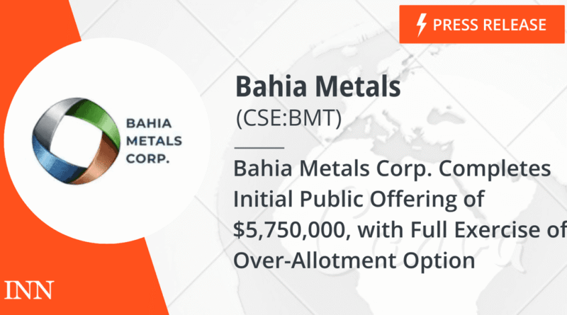 Read MoreBahia Metals Corp. (CSE: BMT) (“Bahia” or the “Company“) is pleased to announce that it has successfully completed its initial